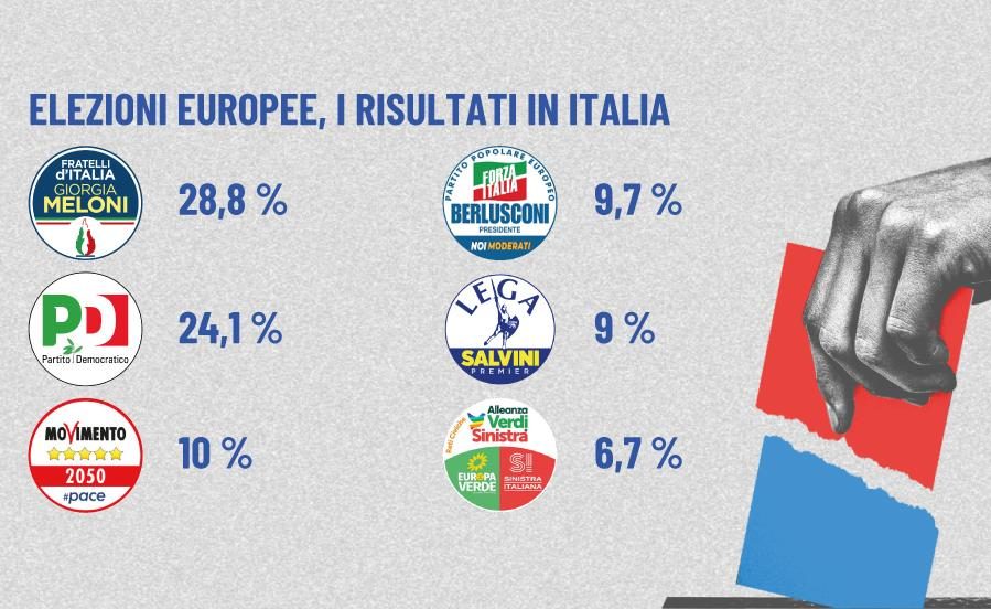 Il Nord e il Centro che premiano FdI e un Pd col vento in poppa al Sud dove è il primo partito trascinato dalla Puglia.